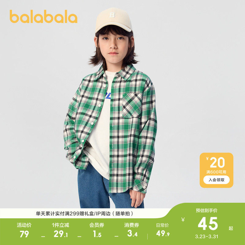 巴拉巴拉童装儿童衬衫男童外套女童款春装2026长袖衬衣亲子装百搭