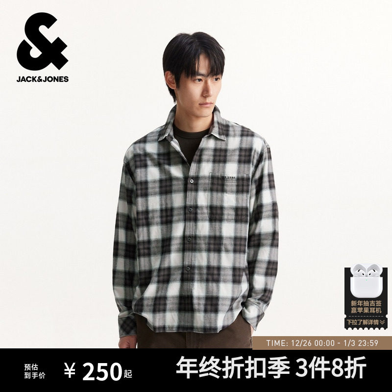 杰克琼斯男装秋季衬衫黑白配色百搭宽松日常时尚纯棉口袋长袖上衣