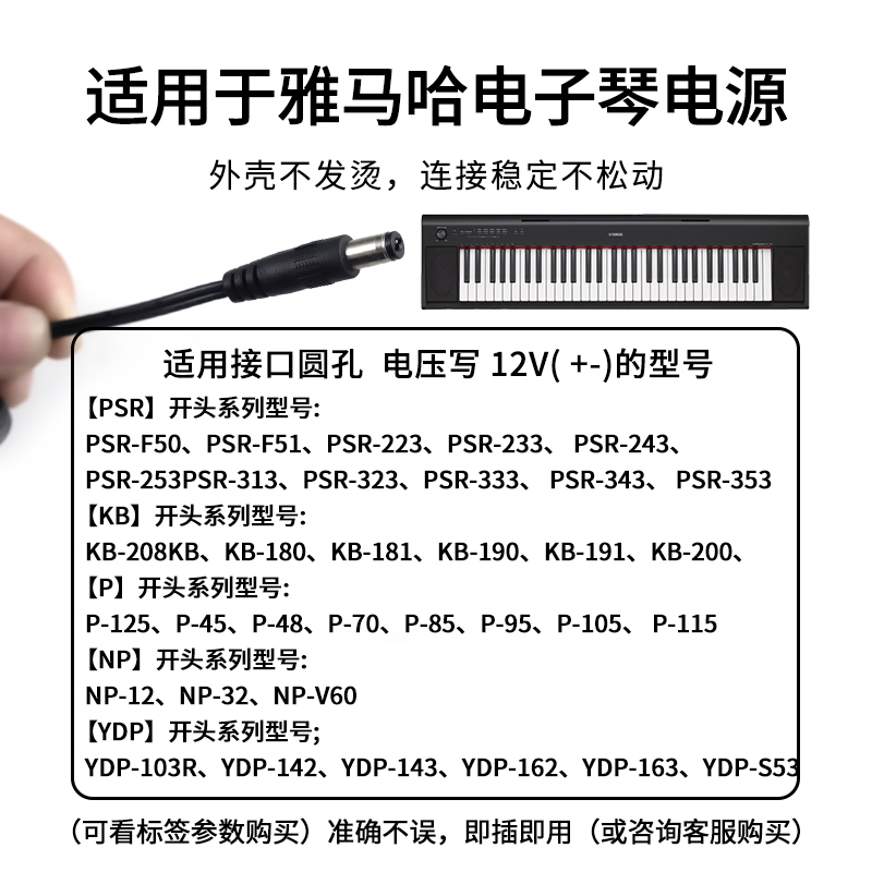适用于雅马哈电子琴电源3米线长家用12V充供电适配器61键PSR-F51/P-125/P-48B/YDP-103R适用圆头