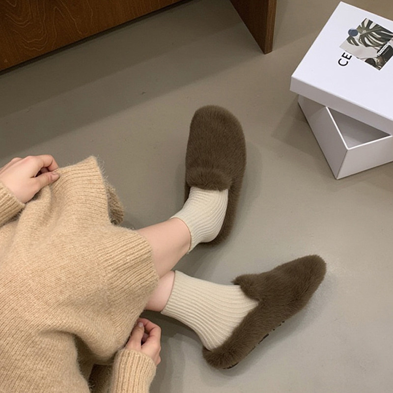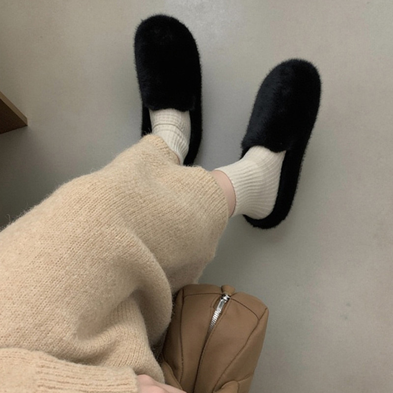 TATAFOCUS~加绒毛毛鞋韩版圆头皮带扣2025冬季新款勃肯鞋女35-28