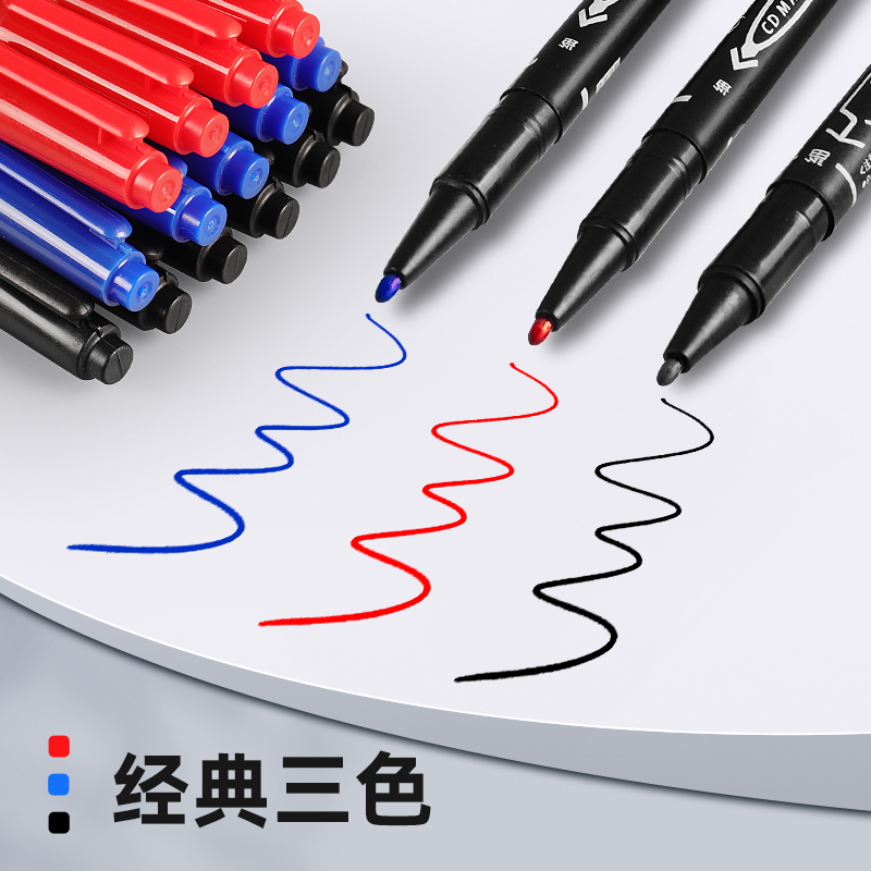 小双头记号笔勾线笔黑色油性速干防水防油不掉色大头马克笔工地美术专用儿童幼儿园小学生绘画描边粗细红蓝水