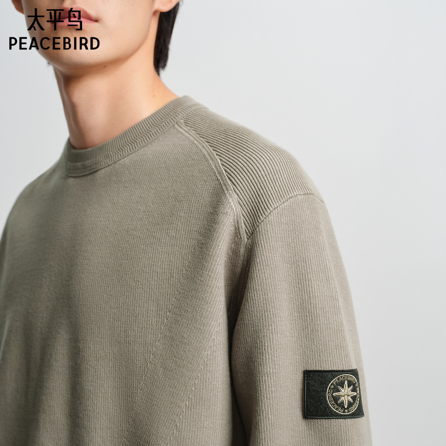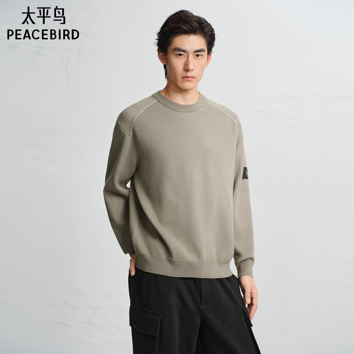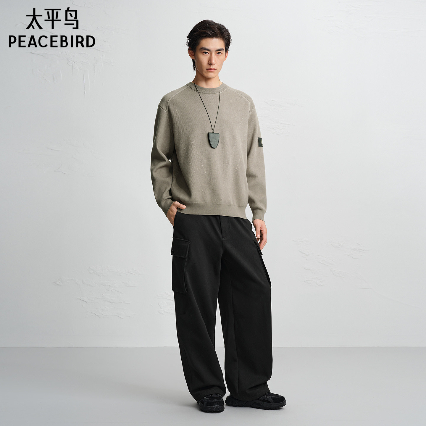 【商场同款】太平鸟男装 休闲毛衫男士时尚纯色圆领毛衣B2EBF4508