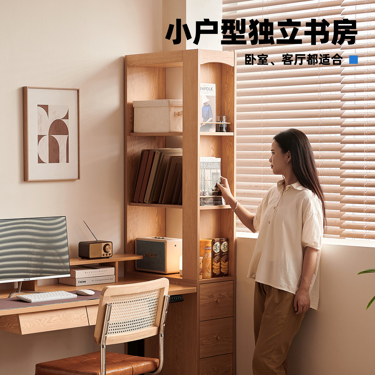 实木书架客厅落地靠墙转角置物架家用日式窄立柜胡桃木色展示书柜