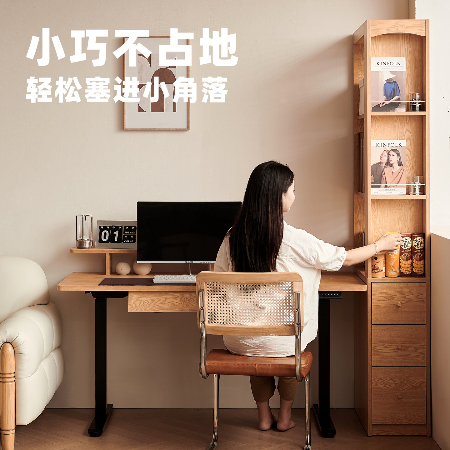 转角书柜落地置物架小户型客厅卧室拐角书架墙边储物柜定制柜子