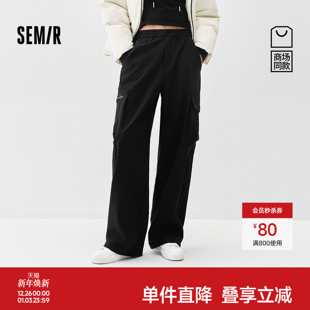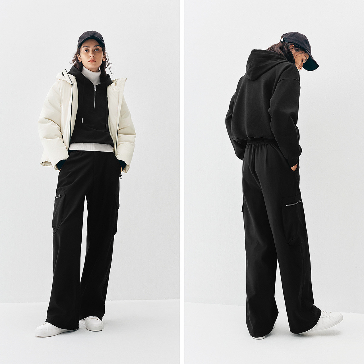 抽绳束脚一裤两穿 简约潮感好驾驭 温暖加绒
