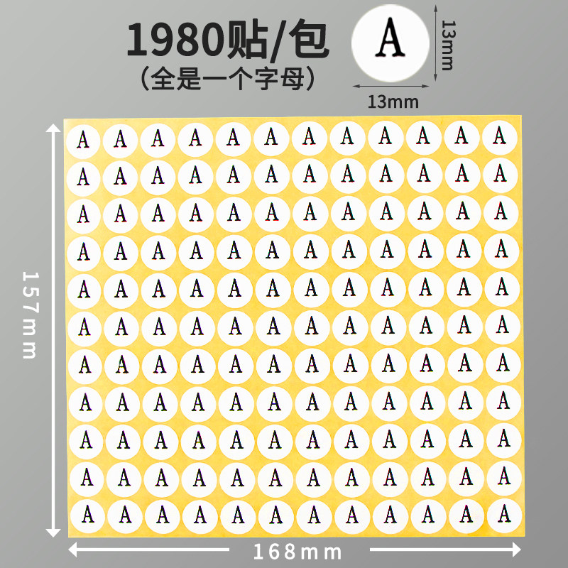 26个英文字母贴纸自粘英语abcd编号圆形标签圆点标识不干胶钢琴键盘家用早教咕卡装饰帖纸