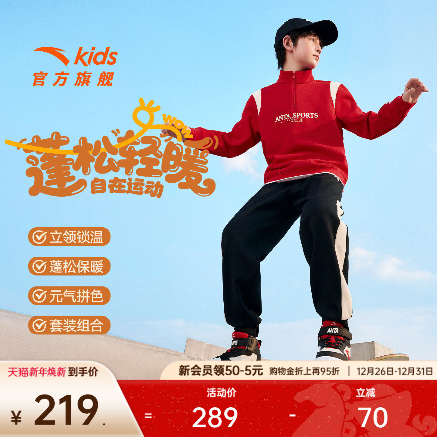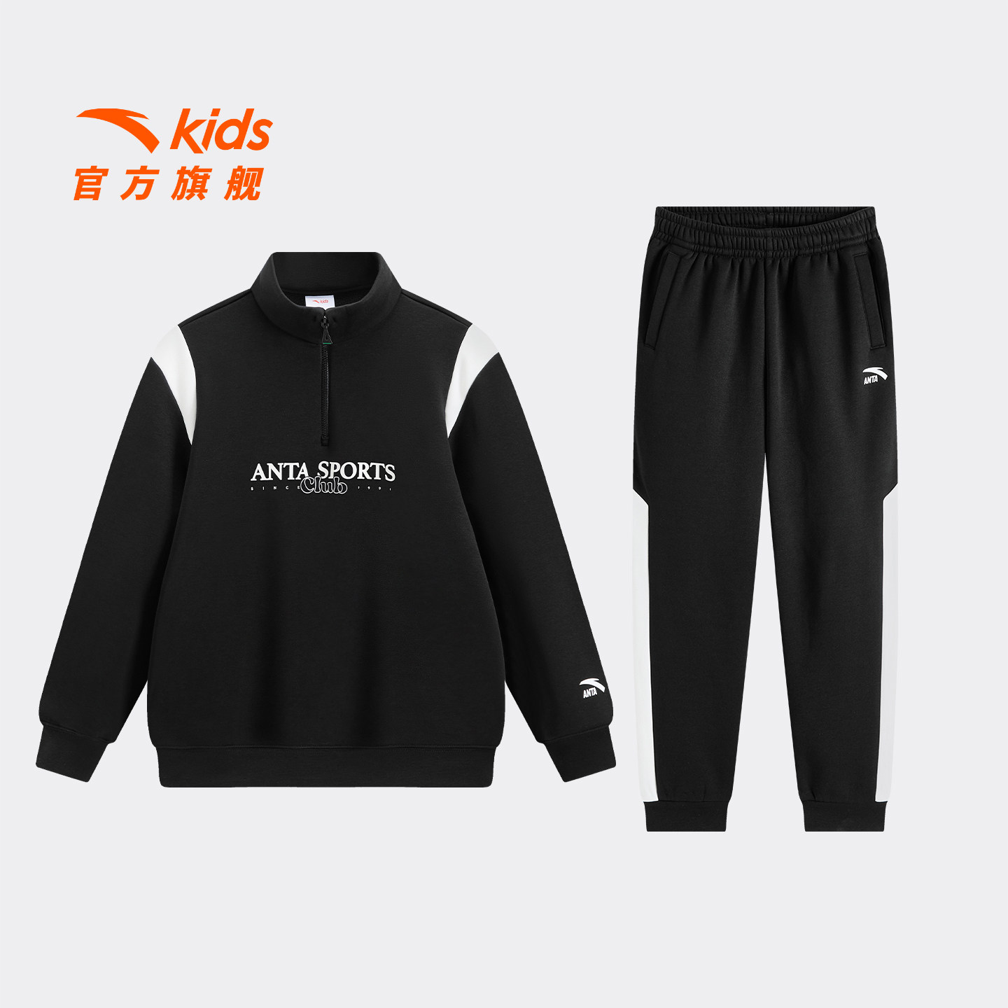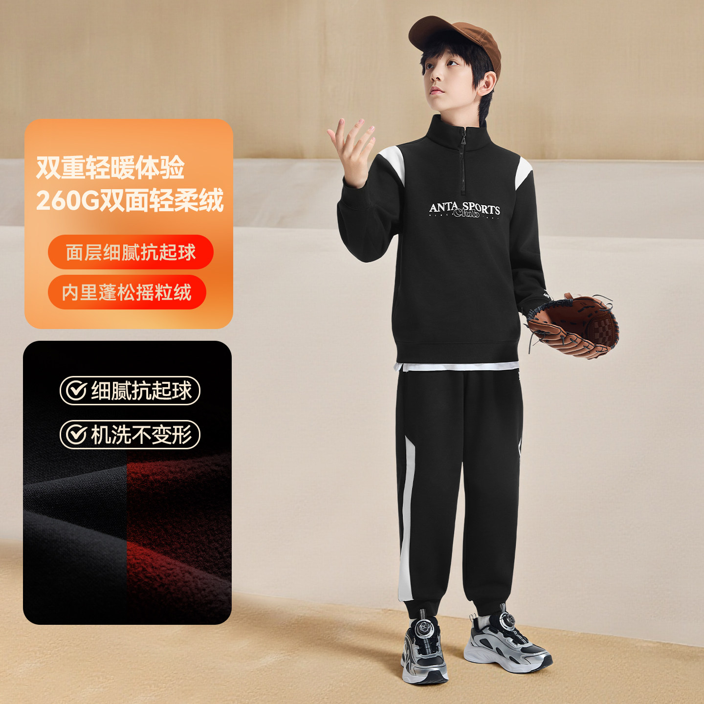 安踏儿童装男童套装秋冬2025新款加绒卫衣卫裤洋气套装学生两件套