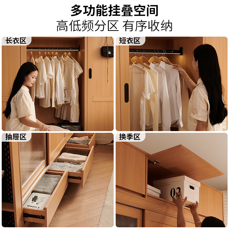 木兜家具衣柜推拉门家用卧室柜子储物柜大容量衣服收纳柜移门衣橱