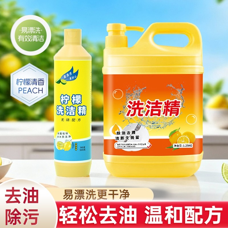 2.5斤家用柠檬洗洁精大瓶不伤手厨房餐饮洗涤剂洗碗餐具去油清洁