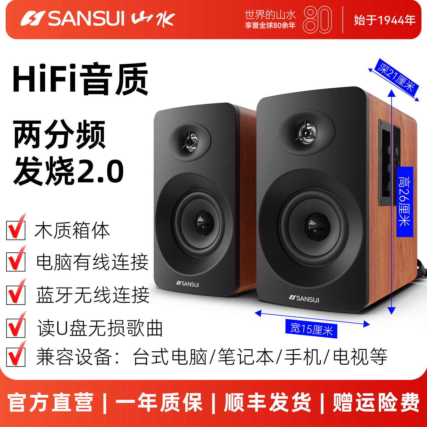 山水62C多媒体电脑音响家用台式蓝牙音箱2.0笔记本低音炮书架箱