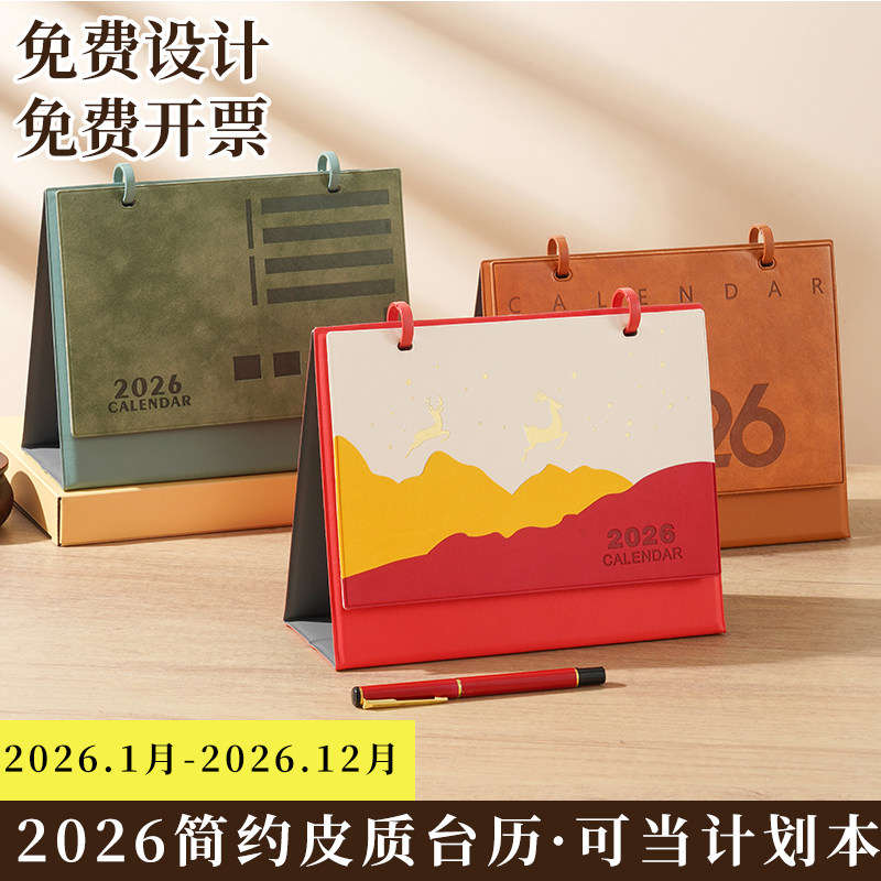 2026年新颖创意皮质台历简约桌面摆件商务办公记事计划本企业定制