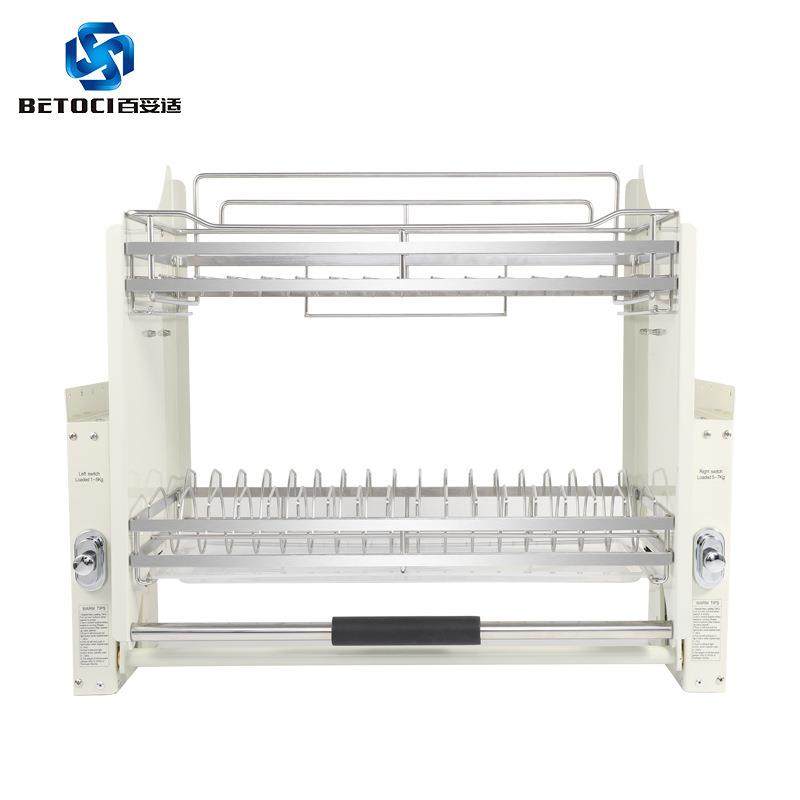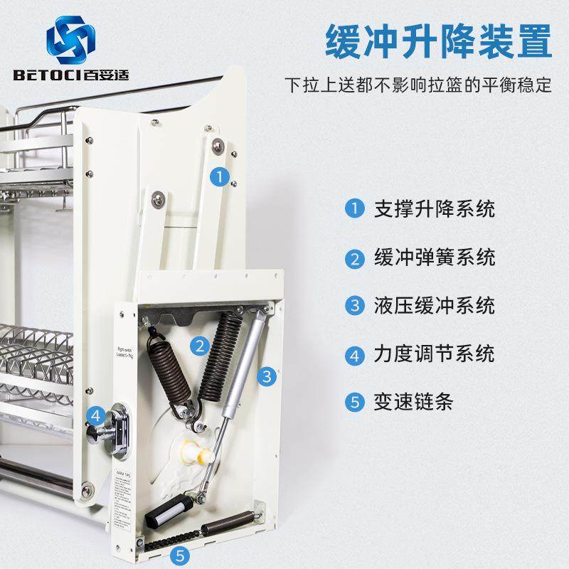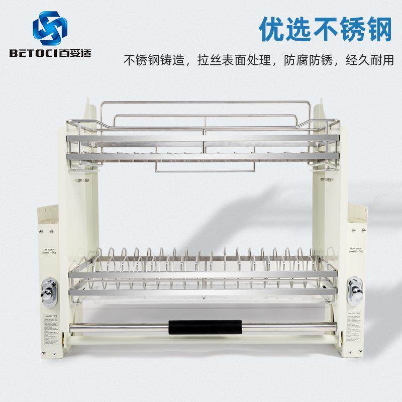 304不锈钢厨房橱柜收纳双层碗碟篮阻尼缓冲上下拉篮 吊柜升降拉篮