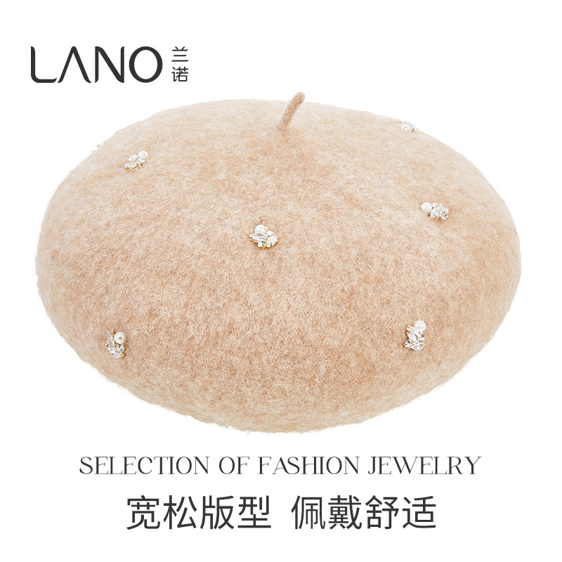 兰诺绵羊毛贝雷帽女款2025秋冬新款时尚潮流大头围毛茸茸防寒帽子