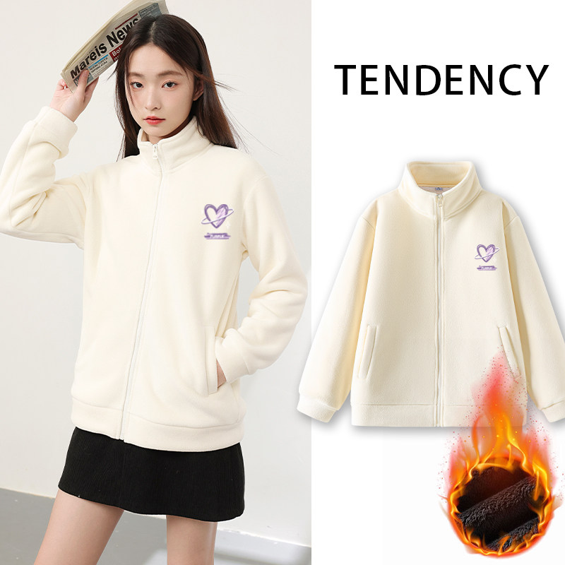 鸭鸭情侣摇粒绒外套男女同款冬季反季长袖户外运动保暖抓绒衣夹克