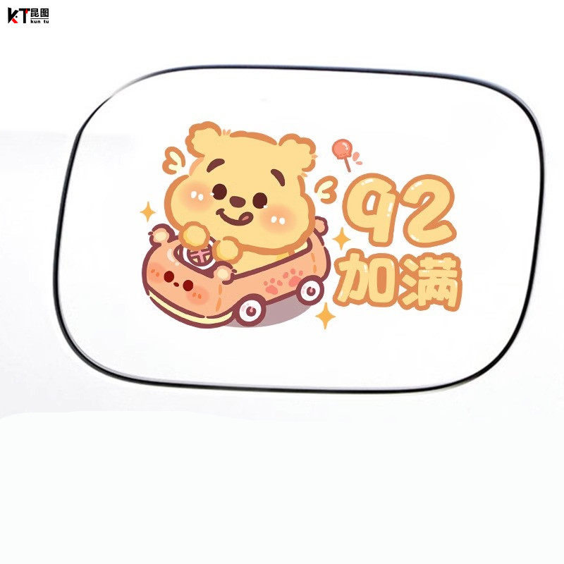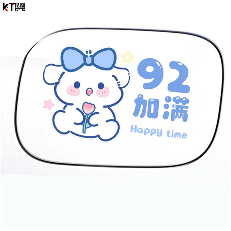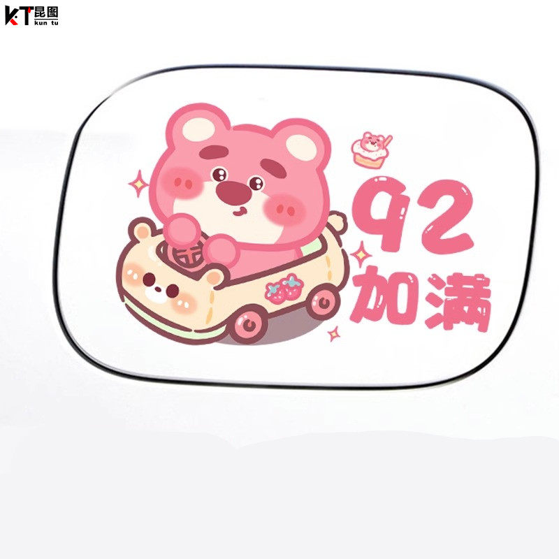 汽车油箱盖车贴可爱草莓熊卡通帕恰狗提示贴汽油9295装饰加油贴