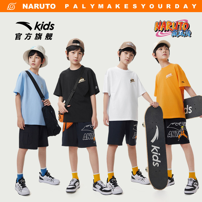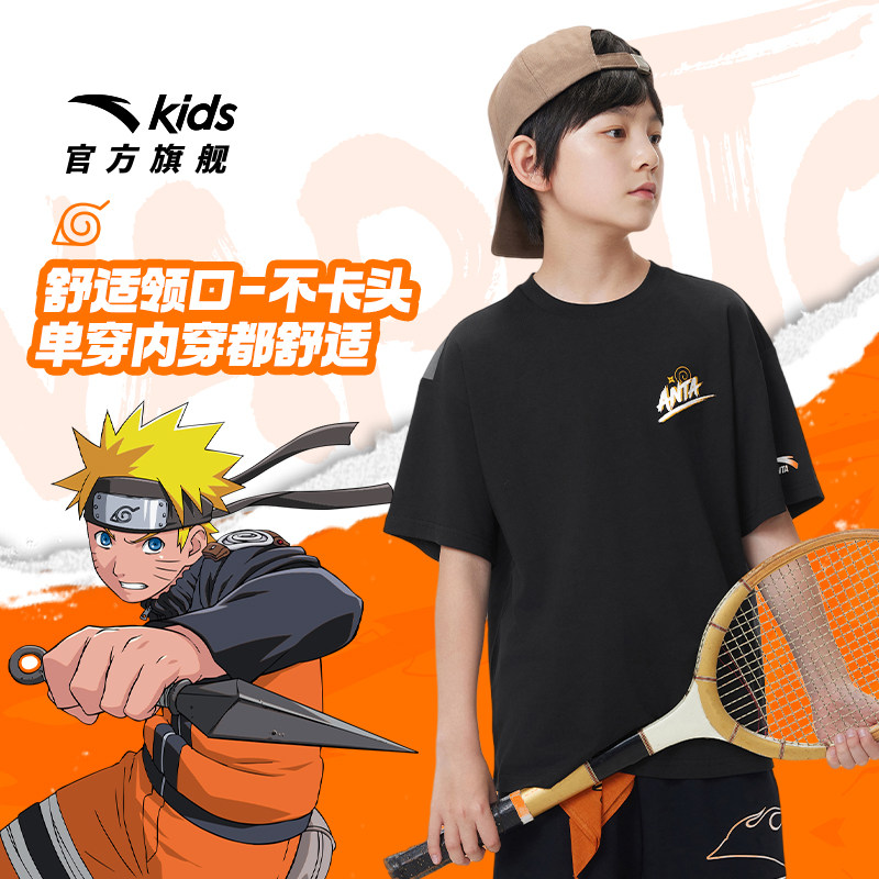 火影联名款安踏儿童男大童针织短袖衫2026夏季新款亲肤纯棉短T袖