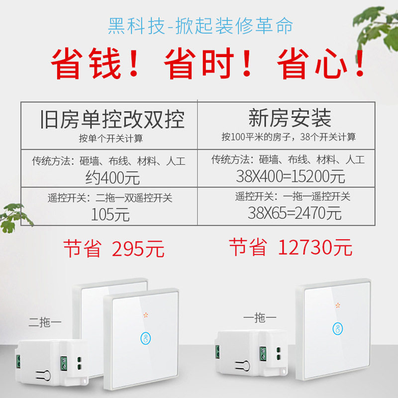 免布线无线开关面板遥控开关220v智能家用触摸随意贴开关一开白色