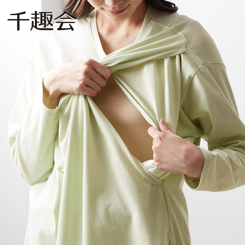 千趣会孕妇装春秋款产后哺乳T恤棉质长袖防走光孕妈舒适外穿上衣