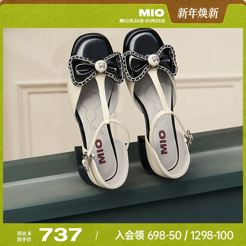 MIO米奥2025夏季新款法式凉鞋链条蝴蝶结甜美可爱小香风包头单鞋