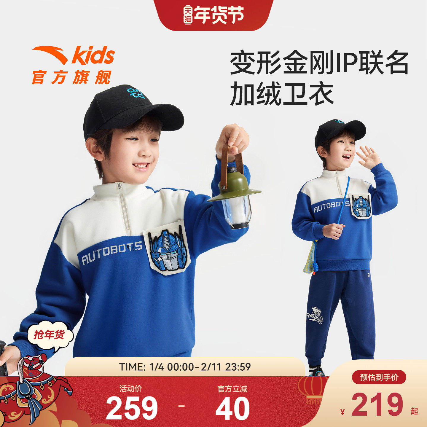 安踏儿童男小童针织套头衫2025冬款上新保暖儿童变形金刚加绒卫衣