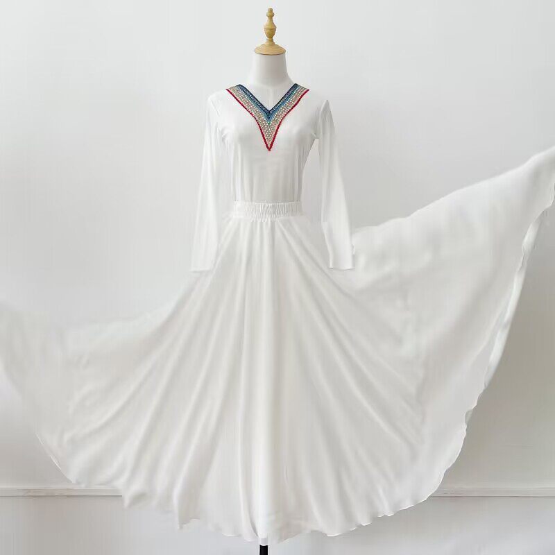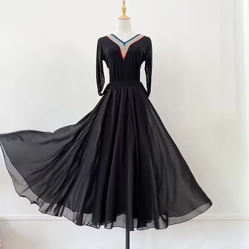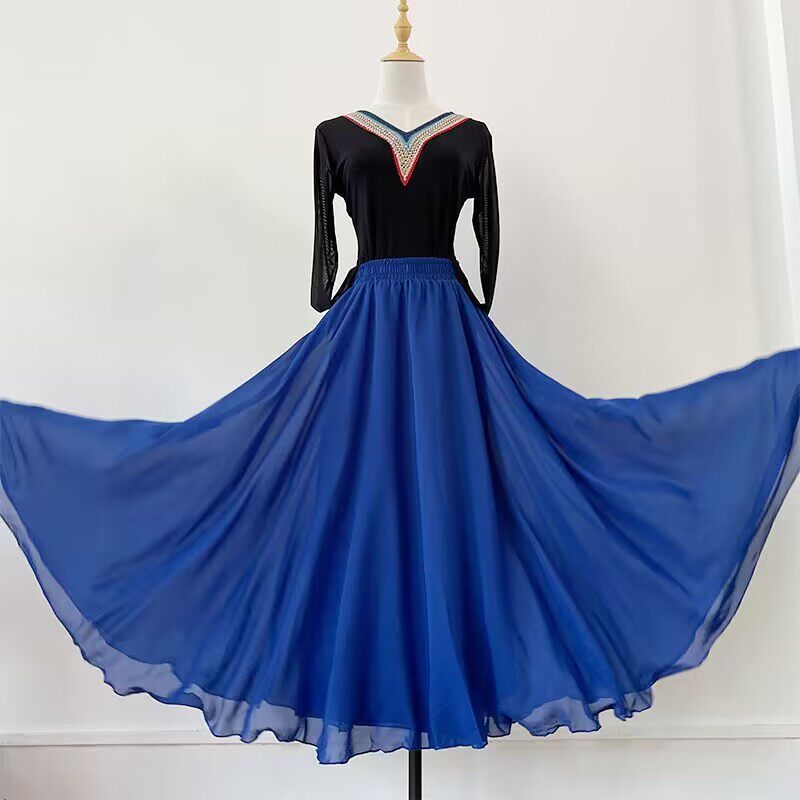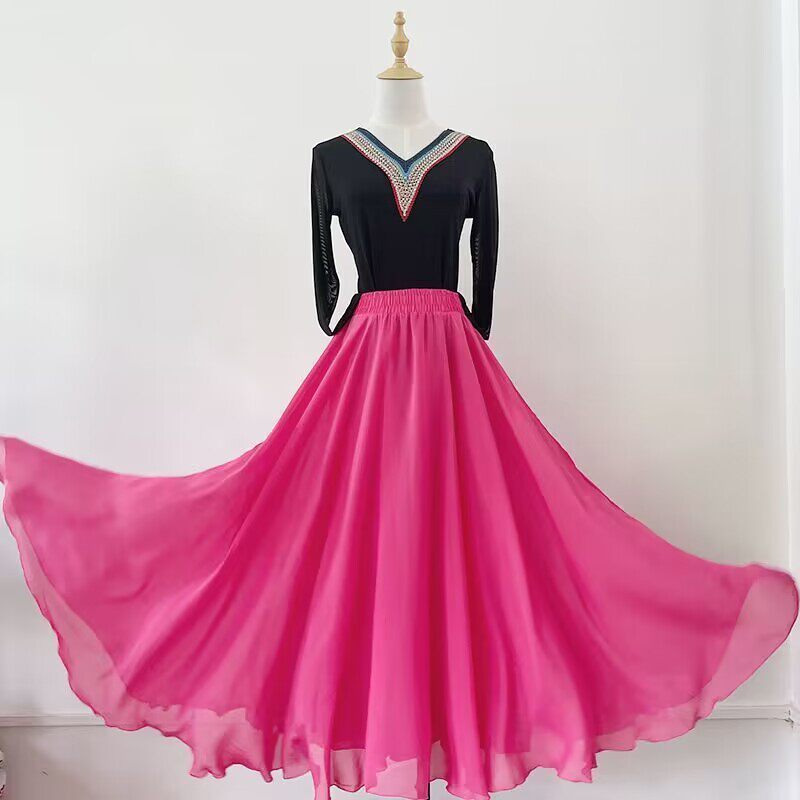 双层雪纺大摆半身裙720度跳舞裙春夏新疆舞长裙民族舞广场舞裙子