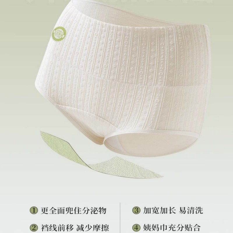 草本初色妇炎洁内裤女2025新款中高腰加长纯棉底裆无痕抗菌三角裤