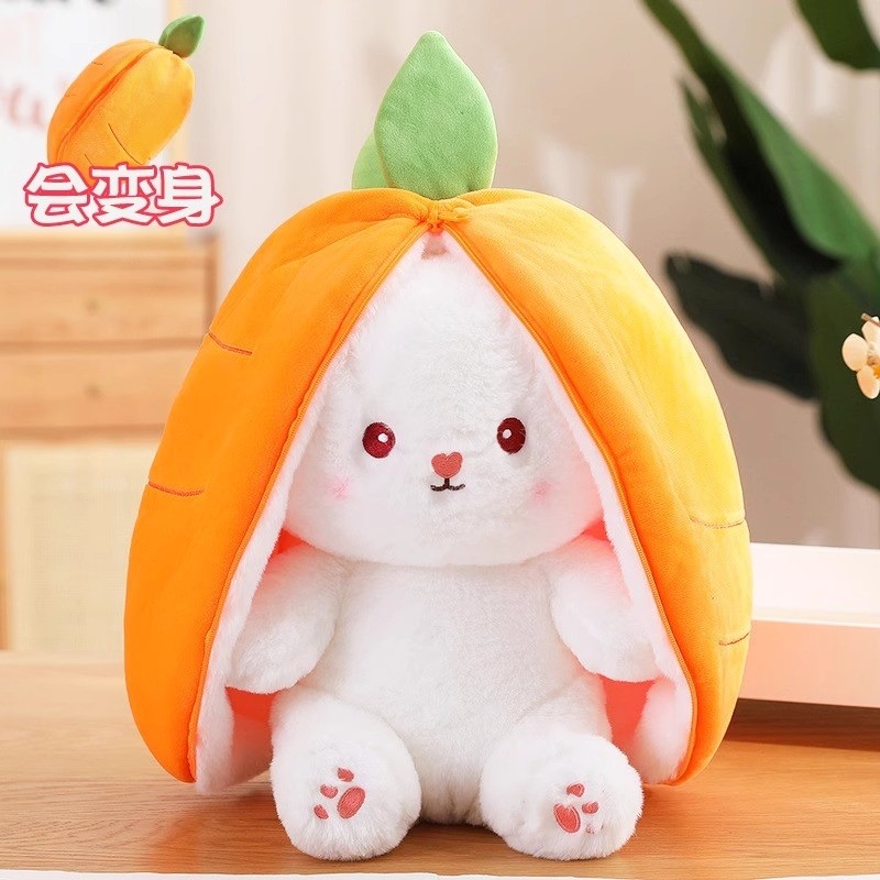 草莓变身兔子玩偶毛绒玩具网红胡萝卜兔兔公仔抱枕娃娃生日礼物女