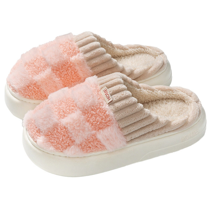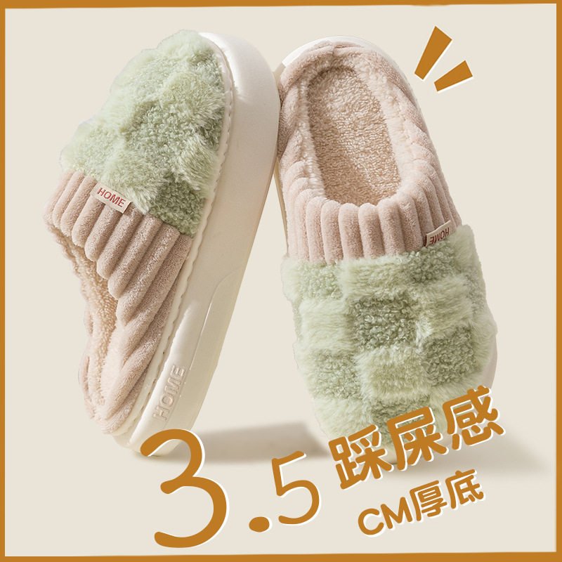 冬季毛绒厚底拖鞋家居室内保暖防滑男女简约加厚舒适家庭装