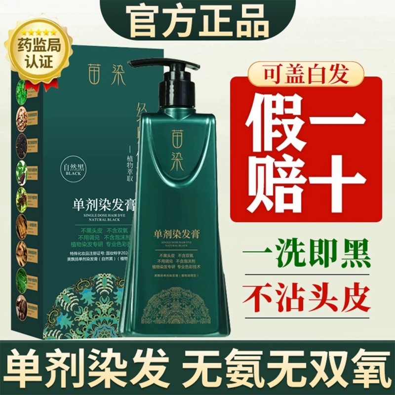 苗染植物萃取单剂染发膏草本自然黑滋养亲肤温和持久盖白染发膏