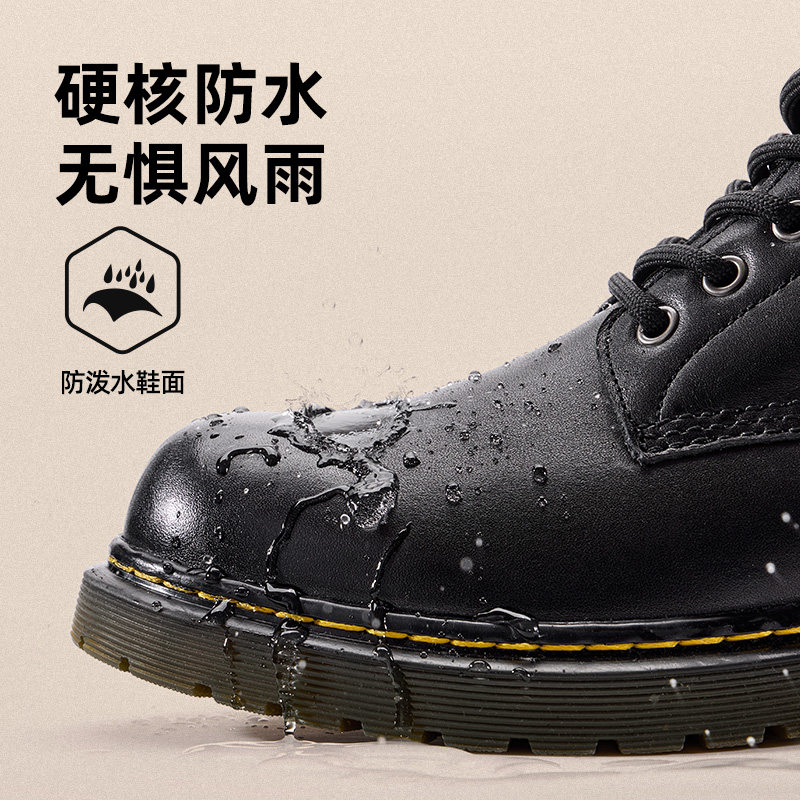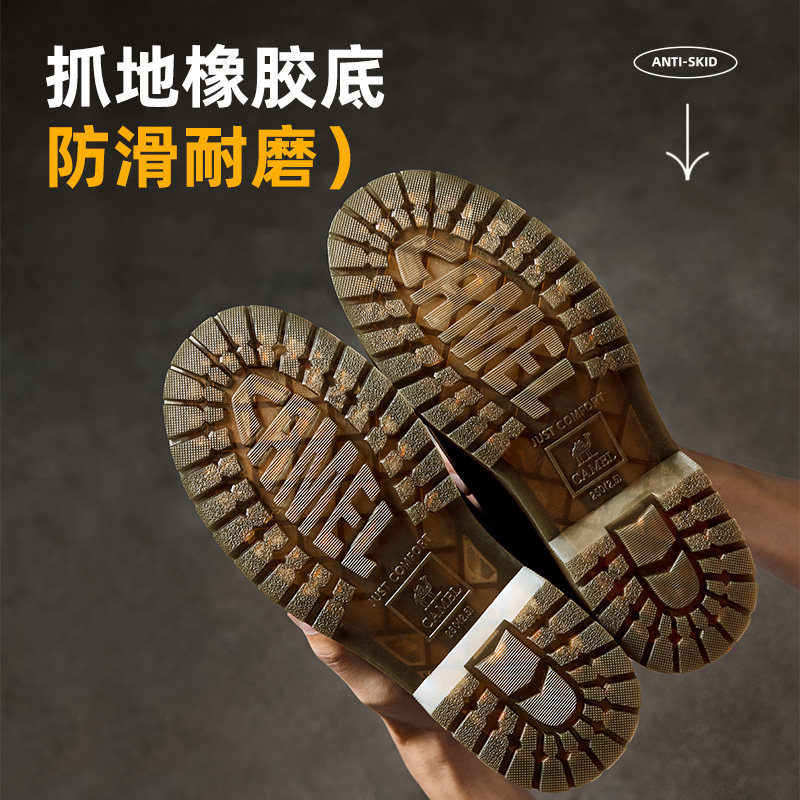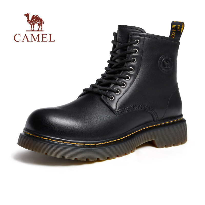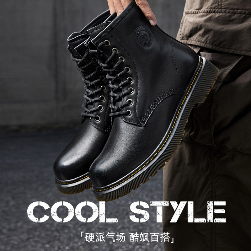 骆驼2025冬季新款真皮增高厚底经典复古8孔机车高帮马丁靴男黑色