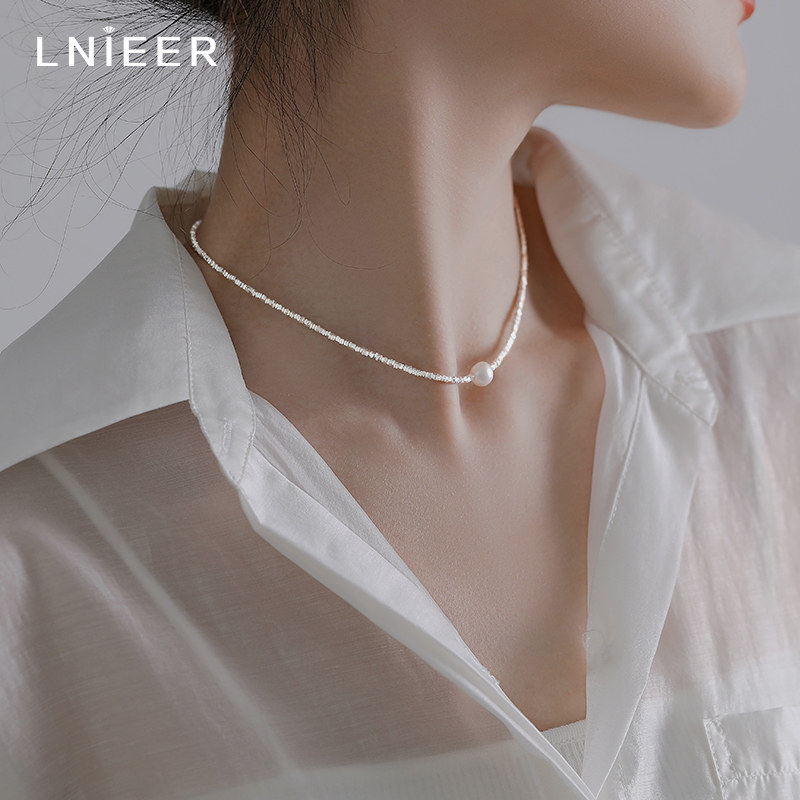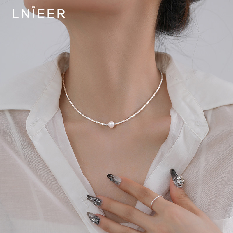 S925纯银碎银子淡水珍珠项链女轻奢百搭高级感锁骨链爆款气质颈链