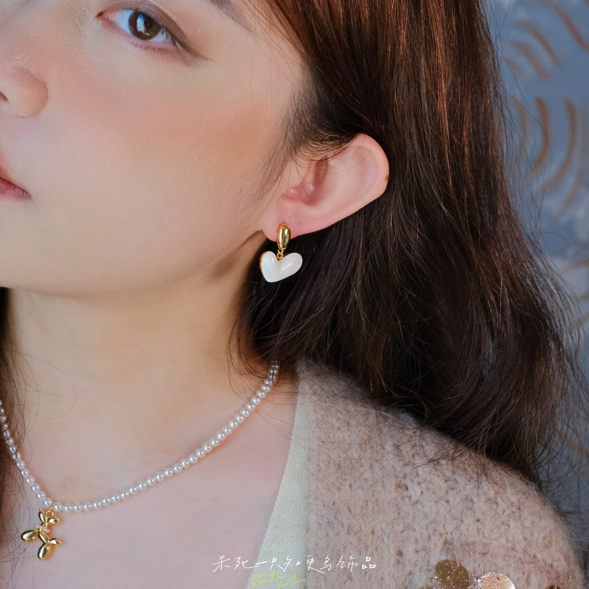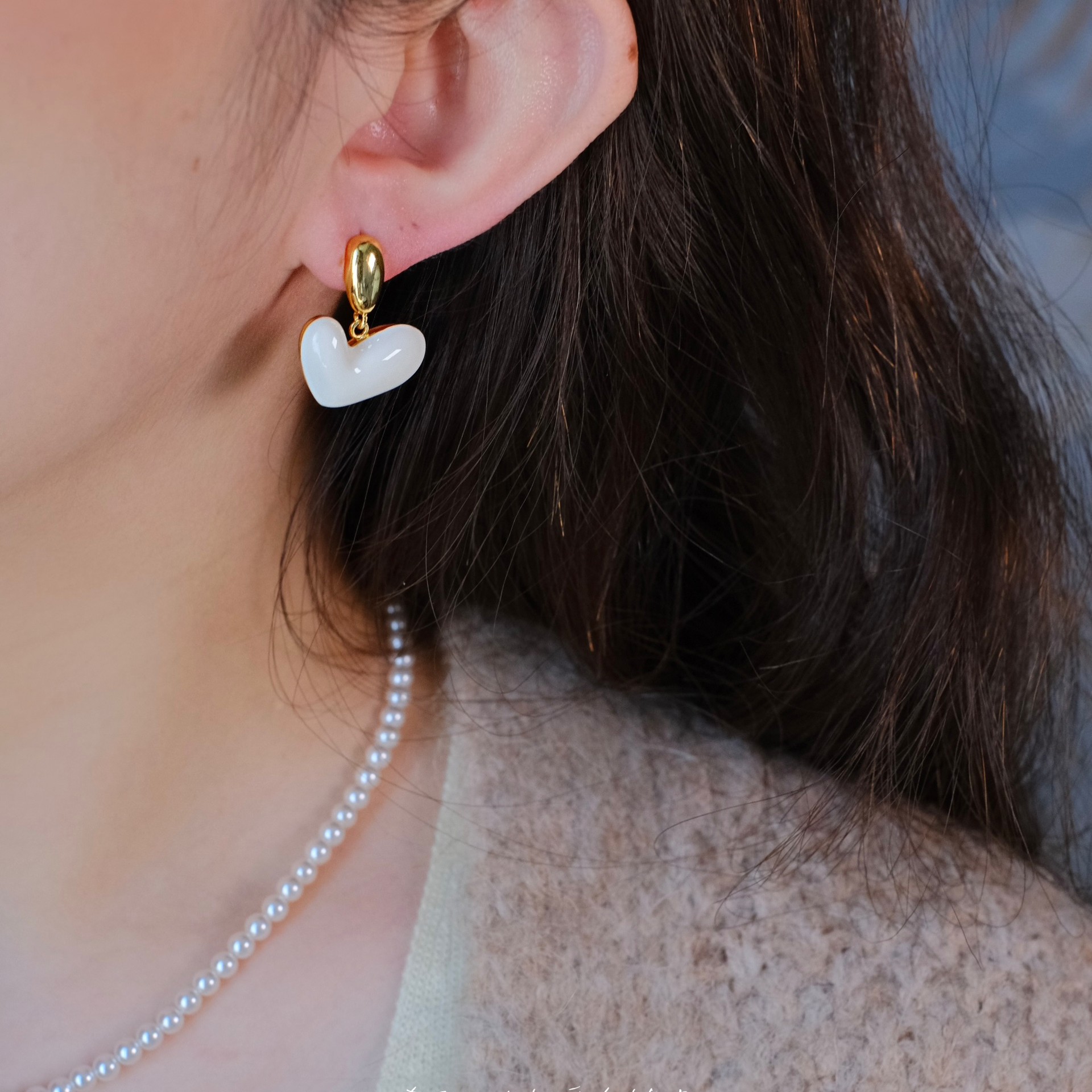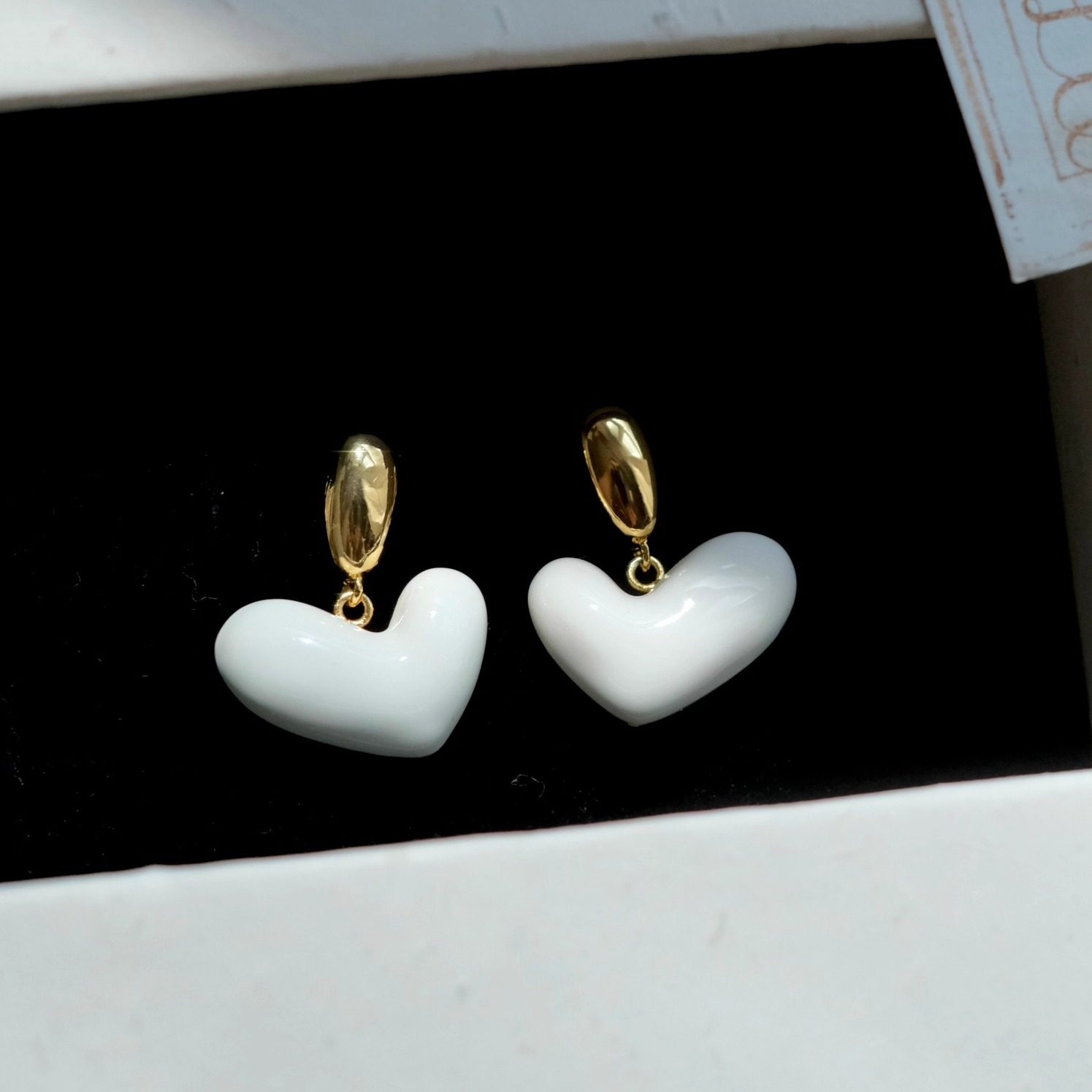 《纯白桃心》法式时髦简约百搭高级感金属爱心珐琅耳钉耳饰耳夹女