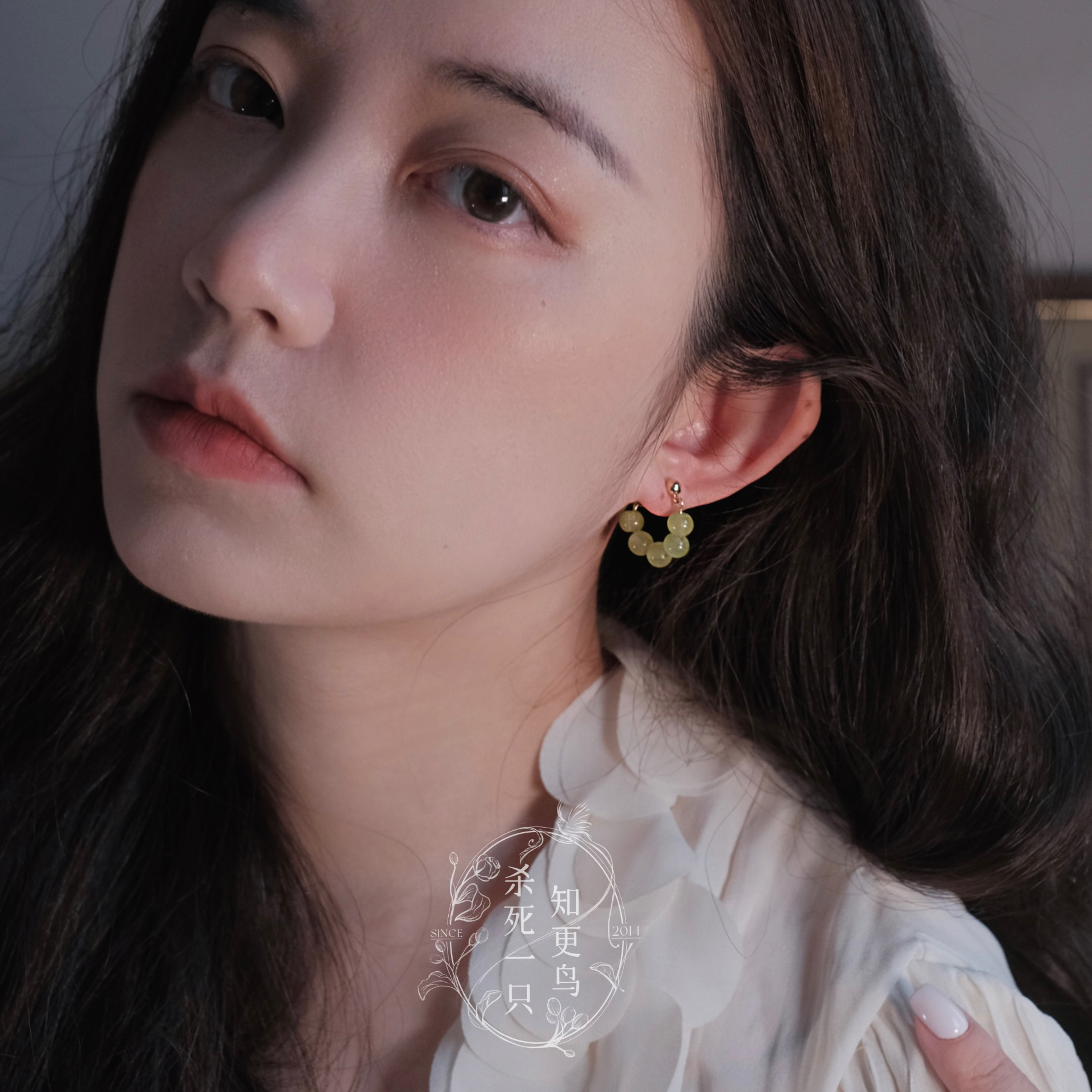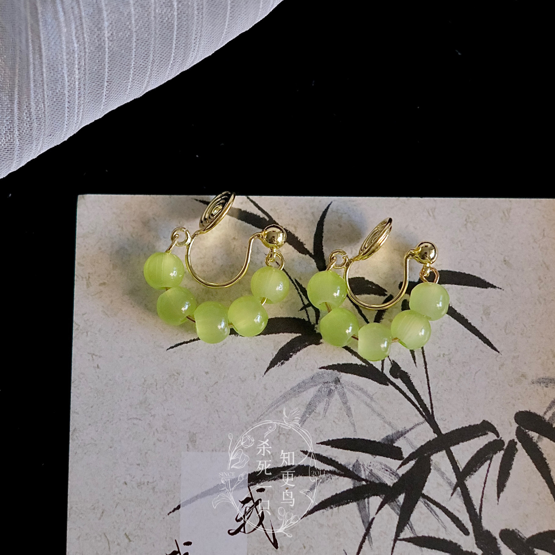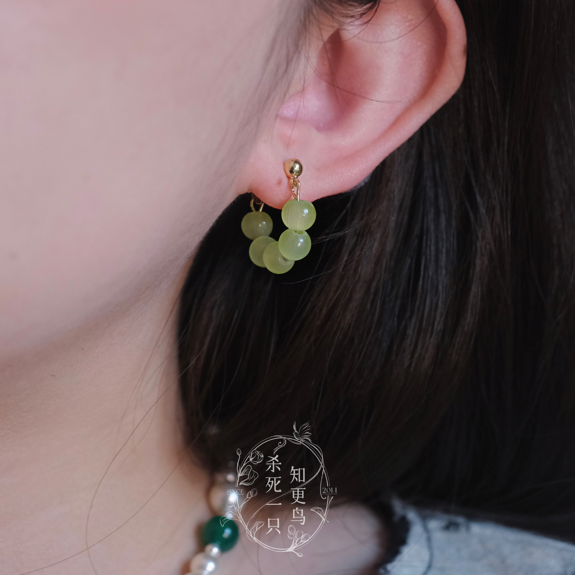 《青青糯山》春夏清新显白复古新中式绿色串珠耳环耳圈耳夹无耳洞