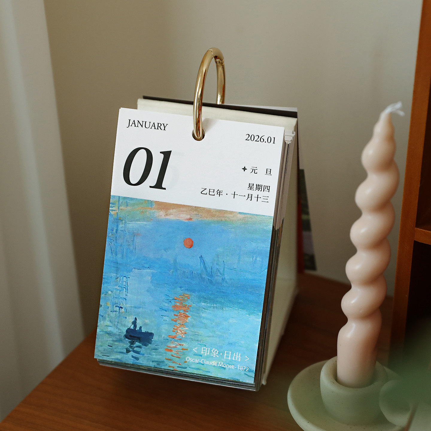 美学映画 2026年新款原创欧式复古油画台历梵高莫奈名画365日历