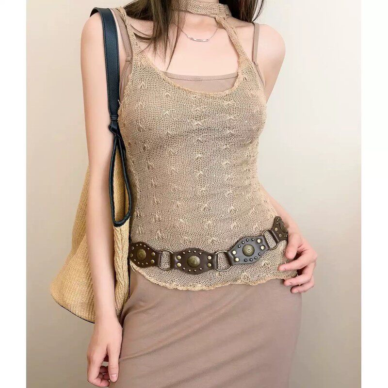 美式复古棕色铆钉蝴蝶腰带女2026新款配牛仔裤皮带百搭连衣裙腰链