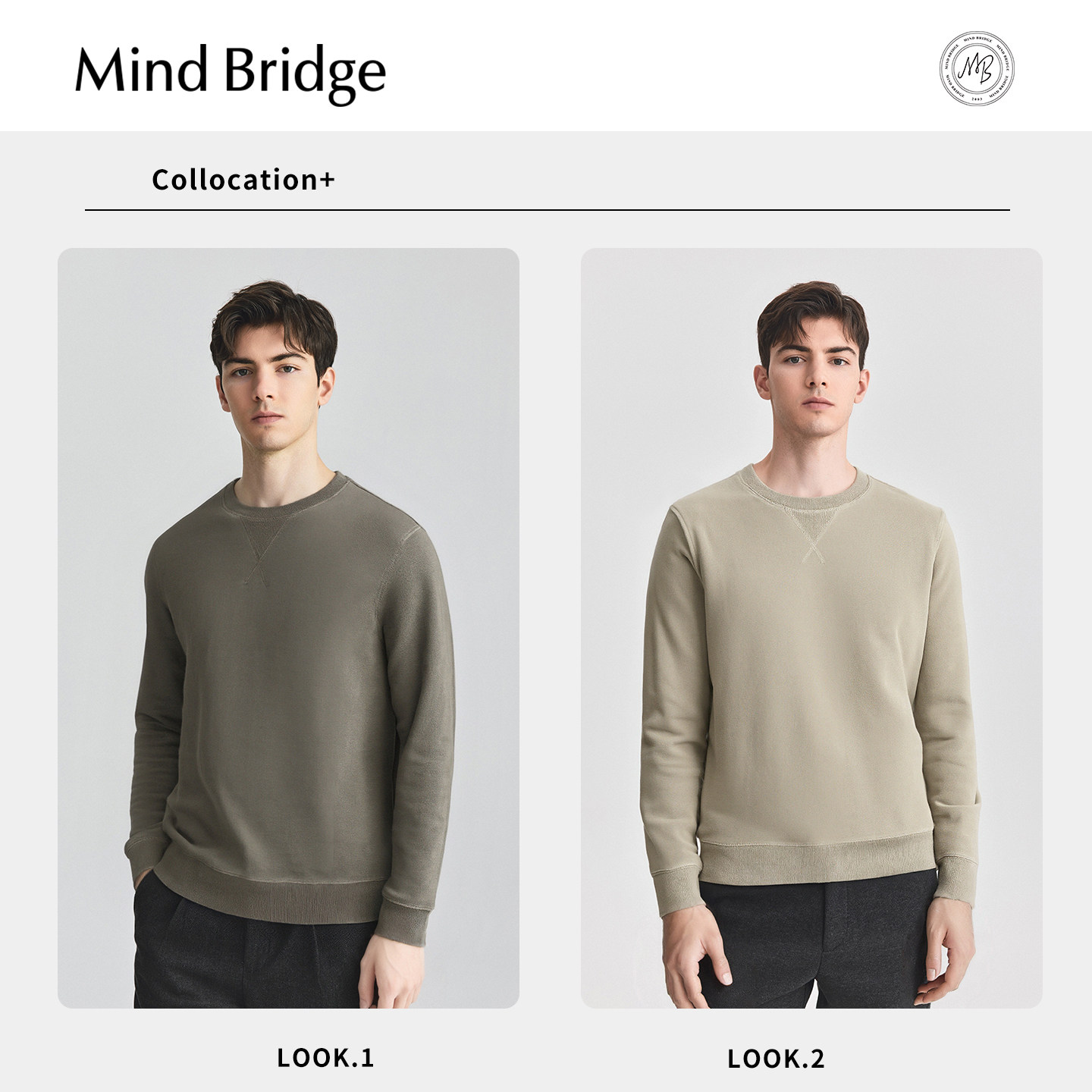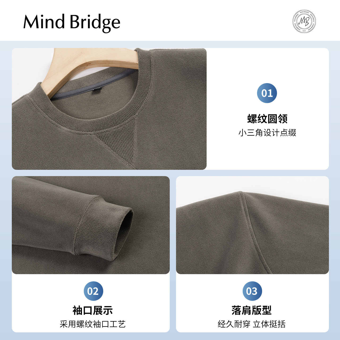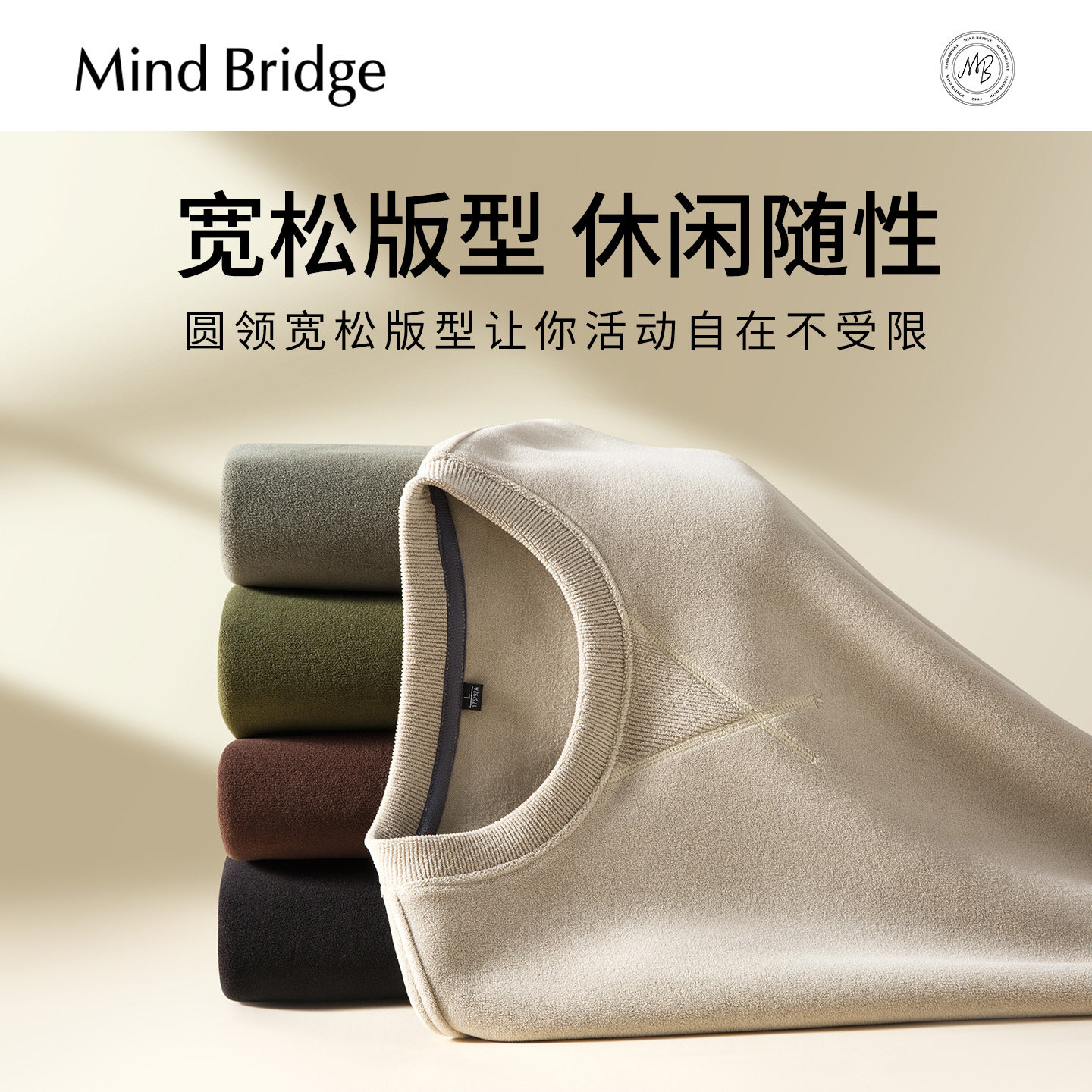 Mind Bridge【加绒加厚】2025年冬圆领长袖T恤男士纯色羊毛卫衣男