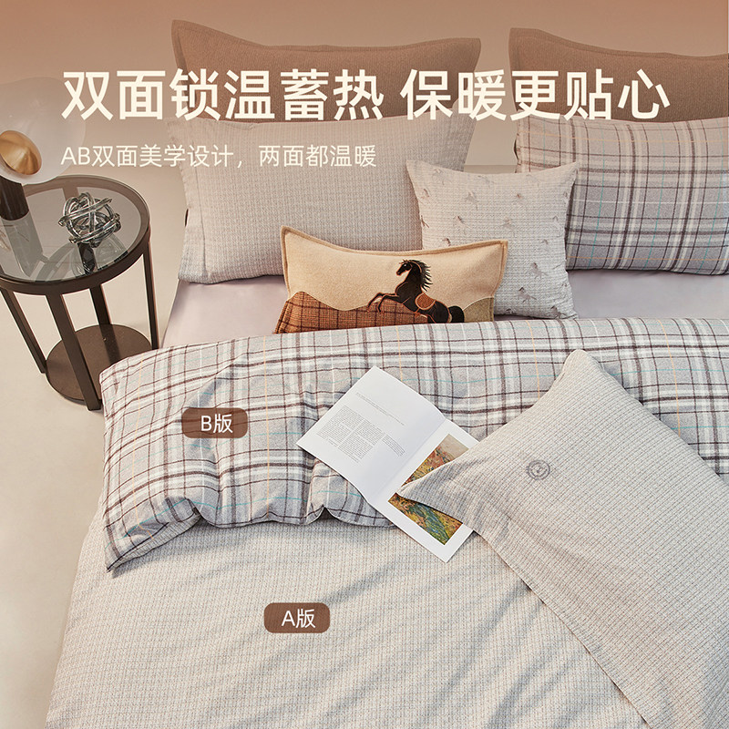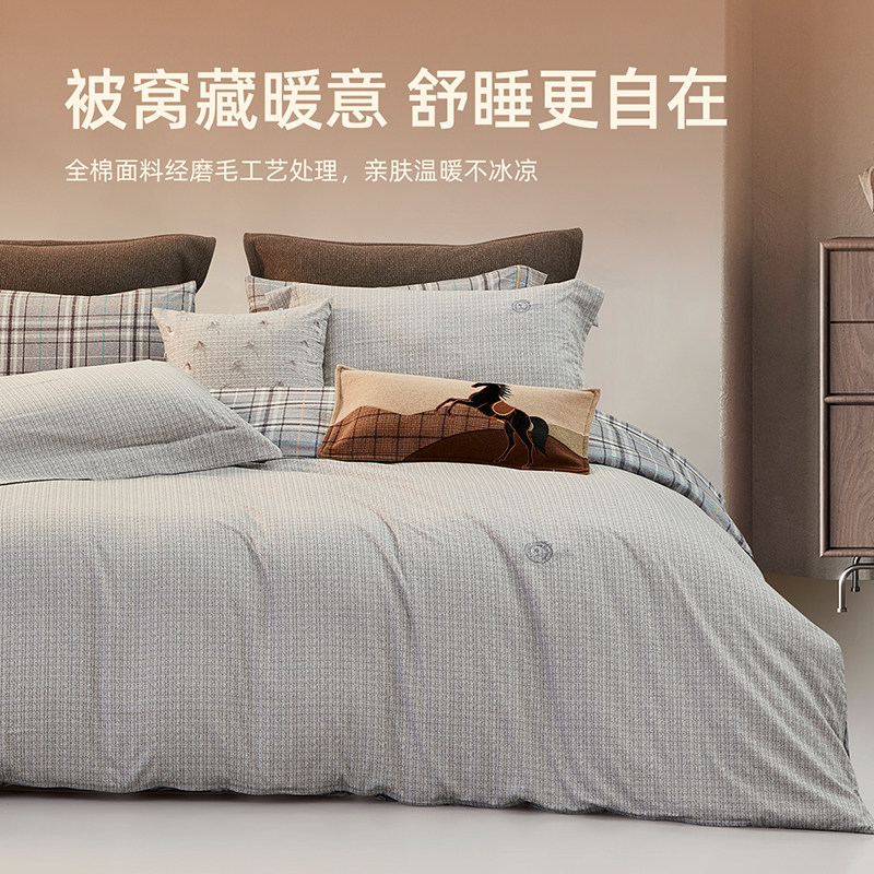 水星家纺全棉磨毛四件套纯棉抗菌加厚保暖床上用品秋冬天床单被套