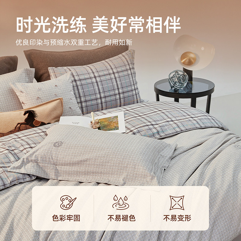 A类水洗棉双层纱四件套被罩非全棉纯棉床单人学生宿舍被套三件套