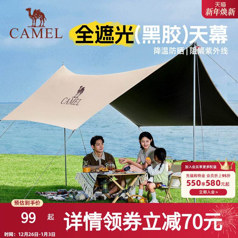 骆驼黑胶天幕帐篷露营遮挡布简易懒人速搭沙滩遮阳棚2025新款