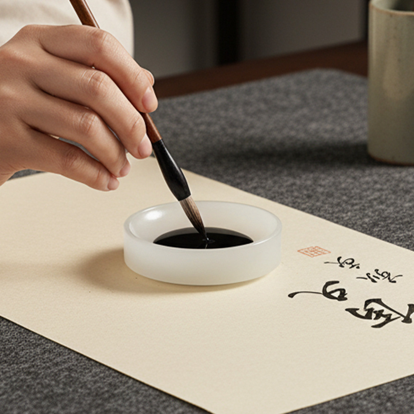 赵北玉石墨碟书法墨碟天然纹理天然玉石毛笔掭笔器案头微型文房水盂精致舔笔托调锋舔墨小件 创意国风小摆件