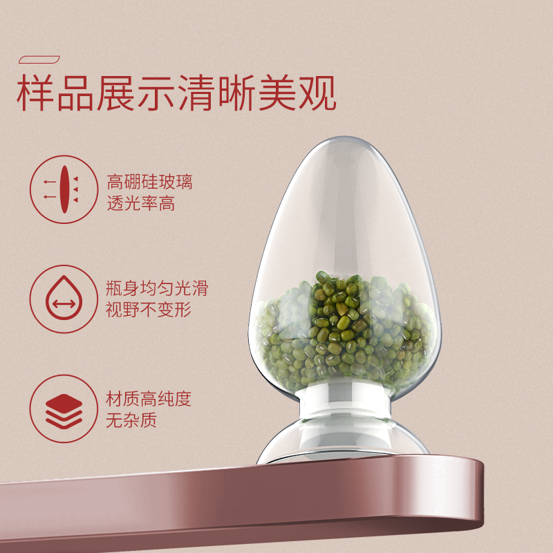 湘玻玻璃鸡心瓶125 250 500mL锥形种子瓶圆头尖头种子展示瓶晶体粉末样品展示瓶实验室玻璃化工样品瓶透明