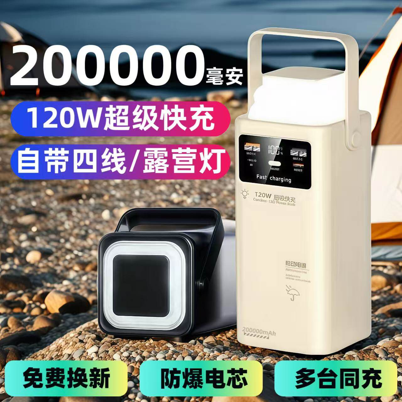 【新国标3C认证】大容量充电宝自带线移动电源超级快充外卖直播户外露营必备带野营灯