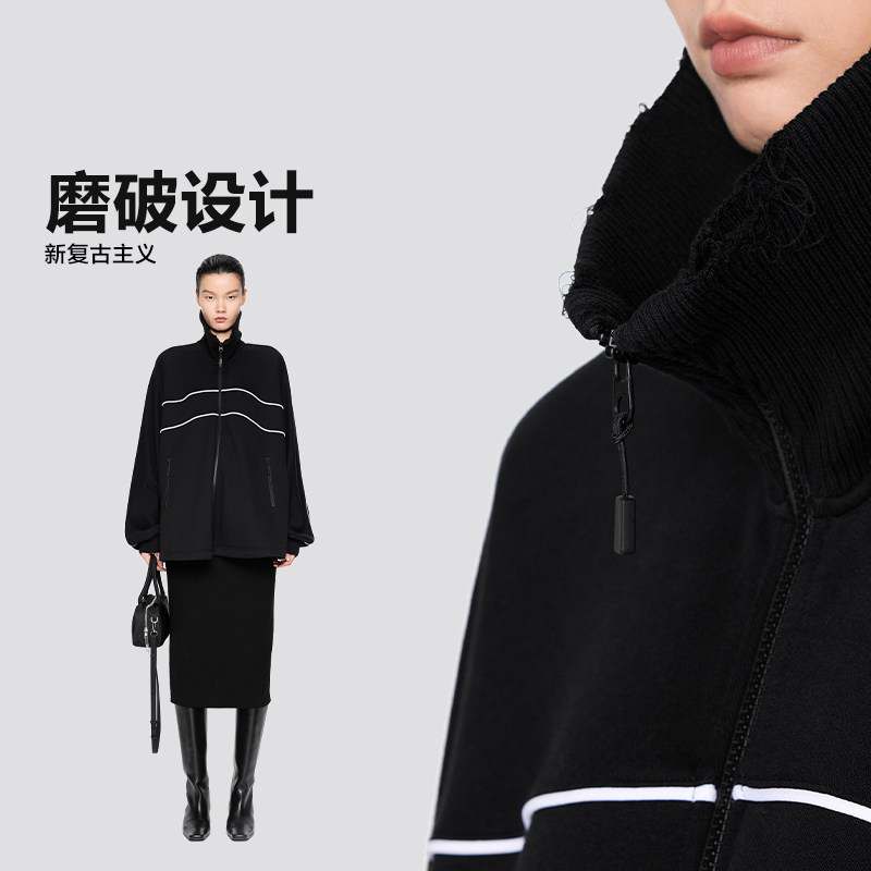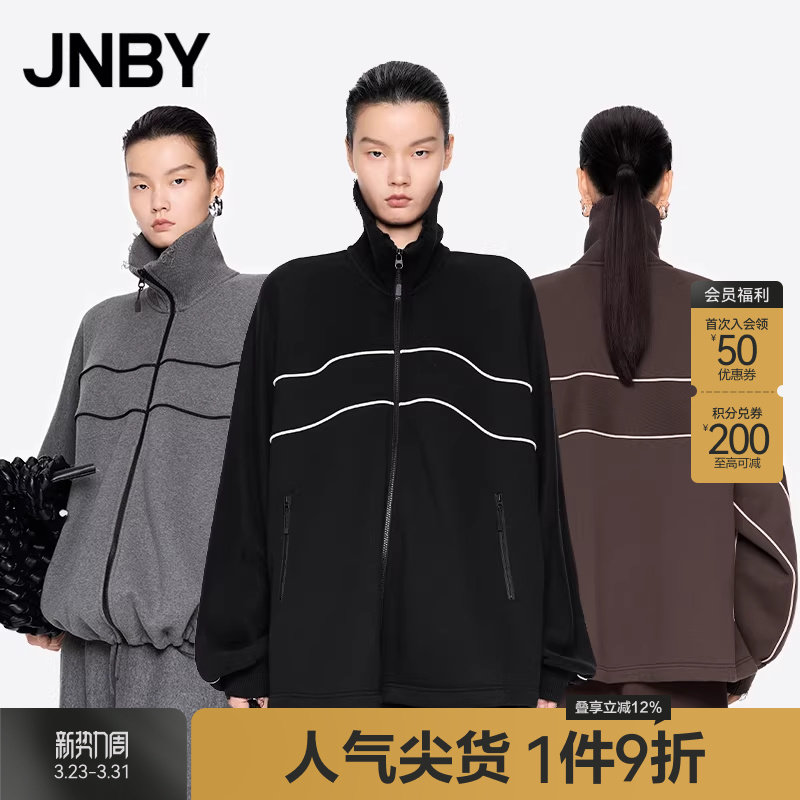 JNBY/江南布衣春秋开襟卫衣抽绳立领宽松休闲运动风外套5O9416010