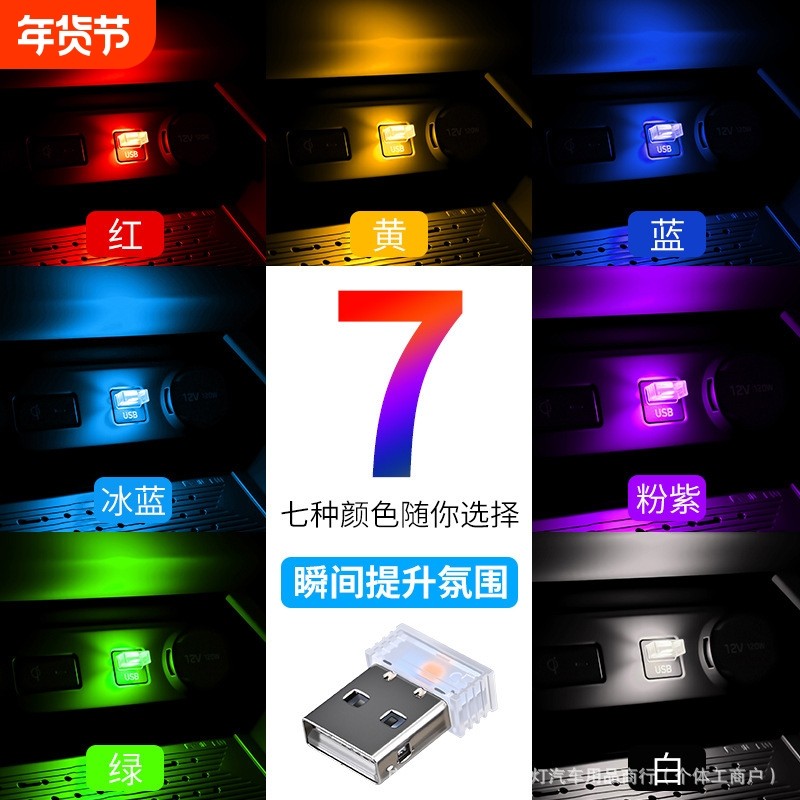 源头厂家 直插小夜灯led 车载usb气氛灯免改装七彩渐变汽车氛围灯