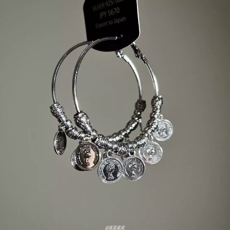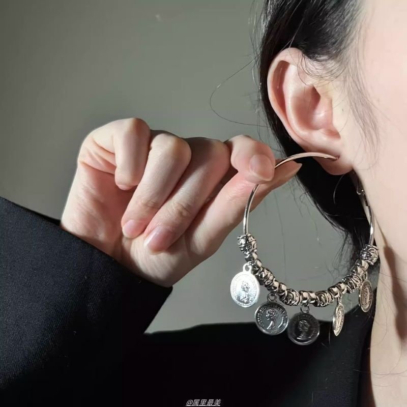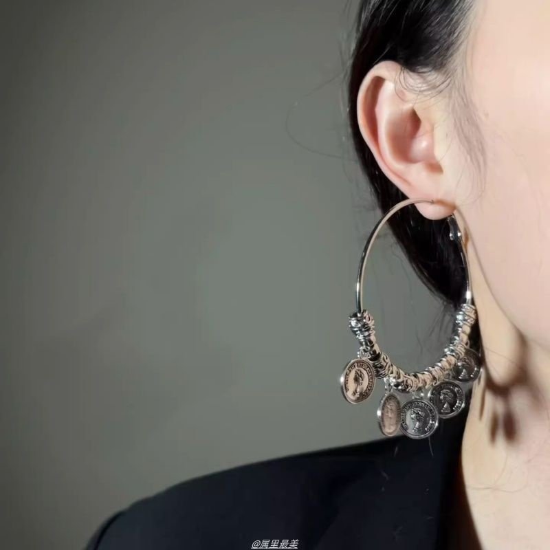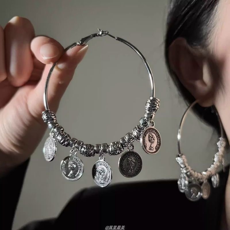 易梦玲同款人像银币流苏耳环女耳圈复古民族风大圈圈耳饰