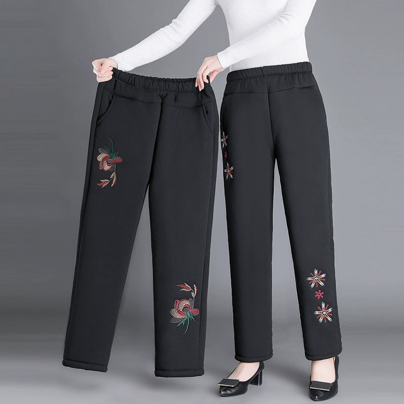 中老年人冬季加绒加厚裤子妈妈奶奶保暖棉裤女宽松冬装长裤刺绣