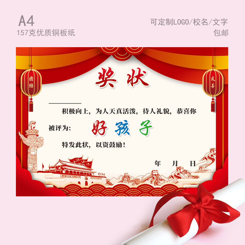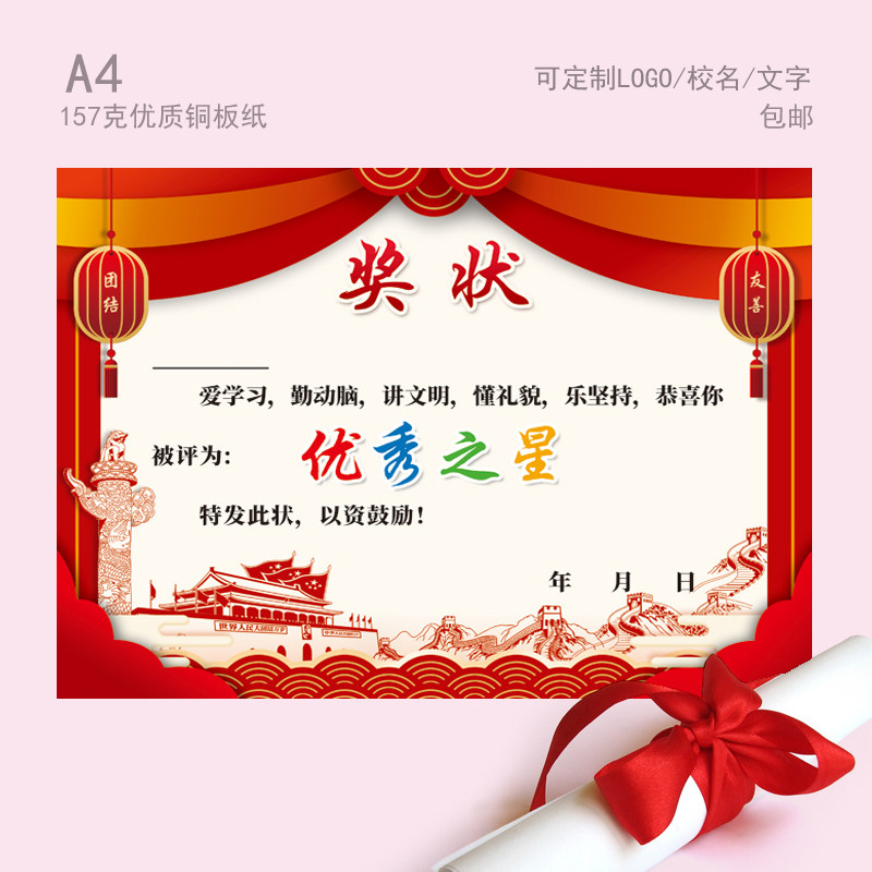 A4新款小学生学期奖状 优秀之星 礼仪智慧好孩子幼儿园学期小奖状