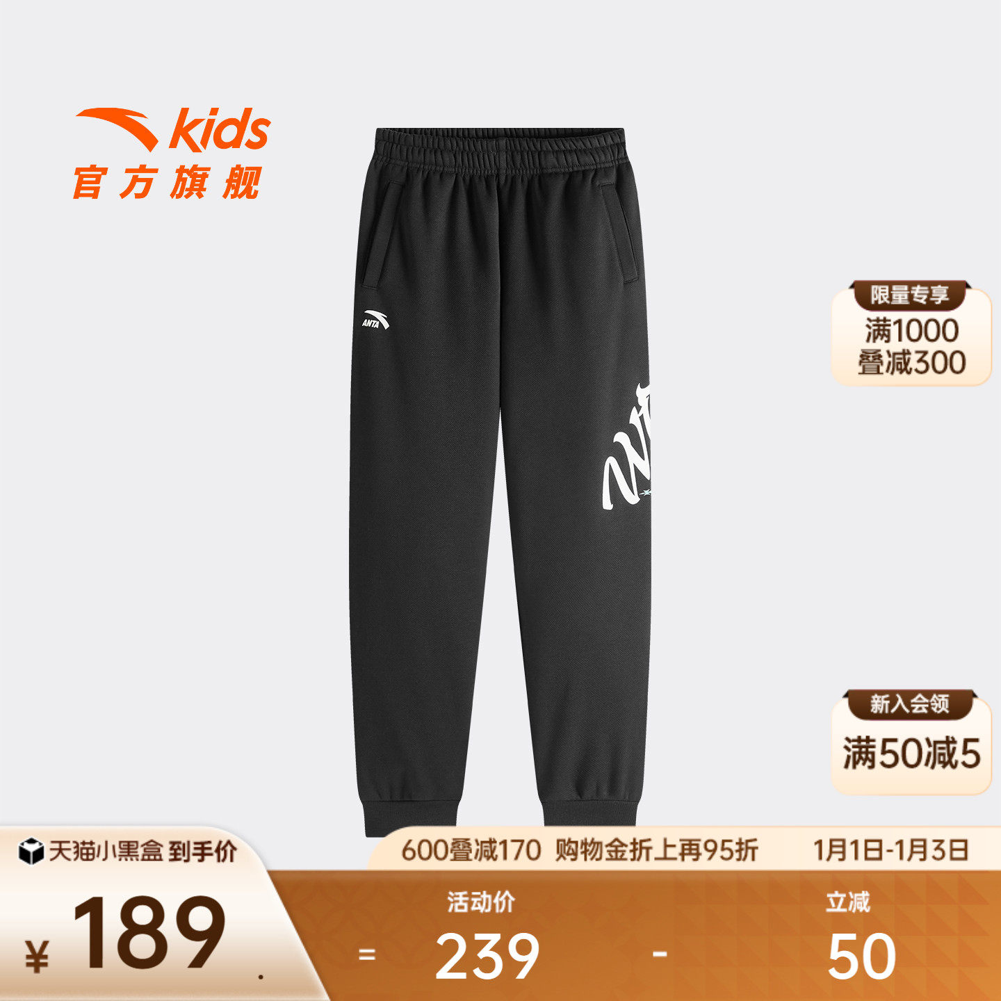 少年顽家安踏儿童男大童针织运动长裤新款舒适保暖中大童加绒裤子