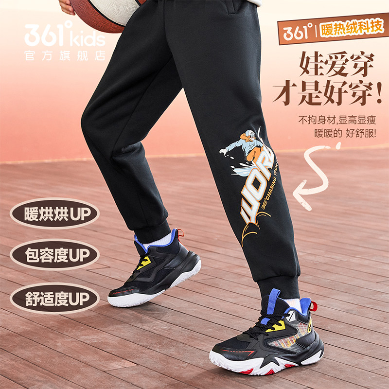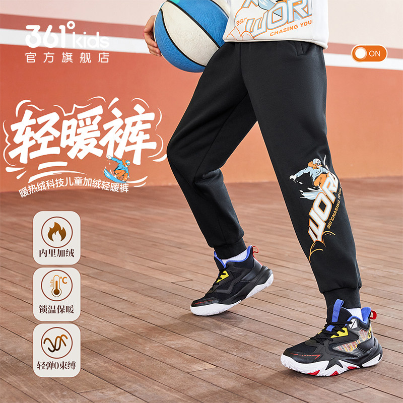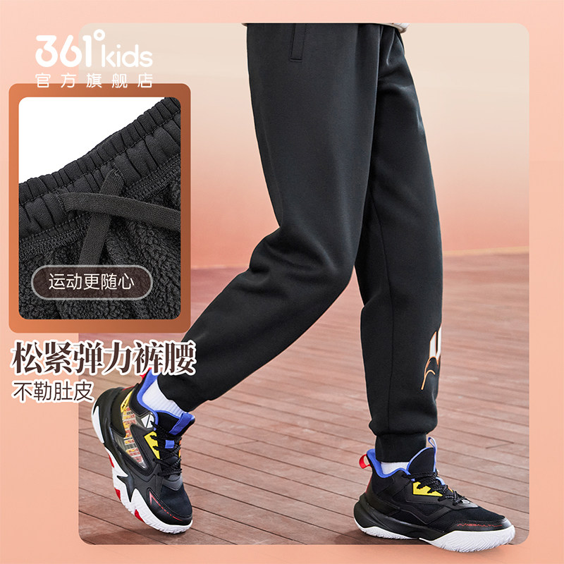 361°童装男女童针织亲肤长裤2025秋冬加绒中大童户外运动裤子