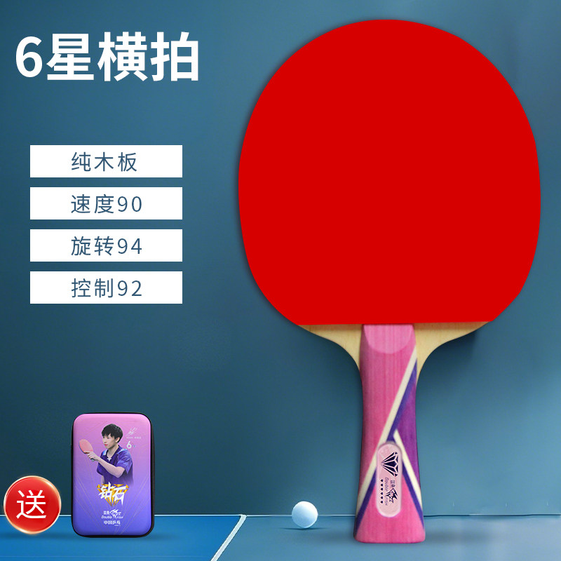 双鱼6星钻石系列乒乓球拍双面反胶长柄短柄横拍直拍高弹力正品